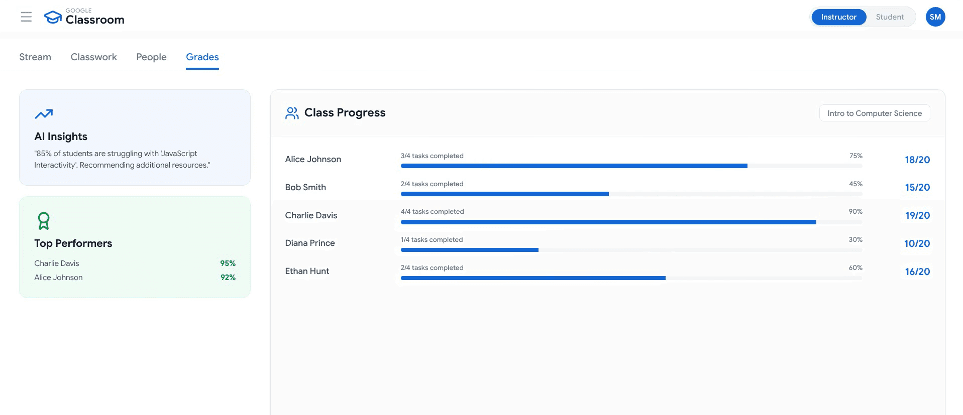 We were not trying to “add AI” for the sake of it, but to validate whether scaffolding plus AI grading could change behavior and outcomes without breaking Classroom’s existing simplicity.