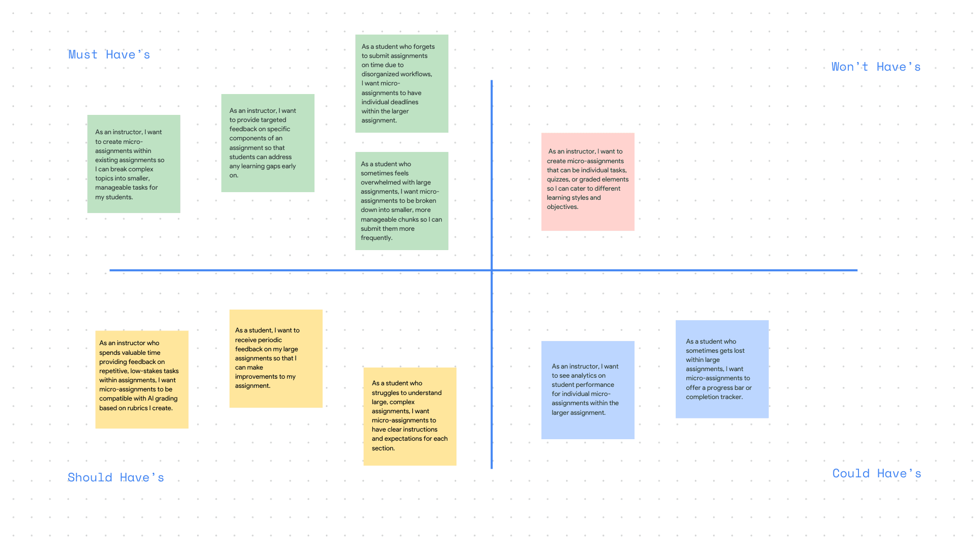 I used MoSCoW Prioritisation to keep the MVP focused on one thing: does breaking work into steps with AI grading each one actually change how students work and when teachers step in?